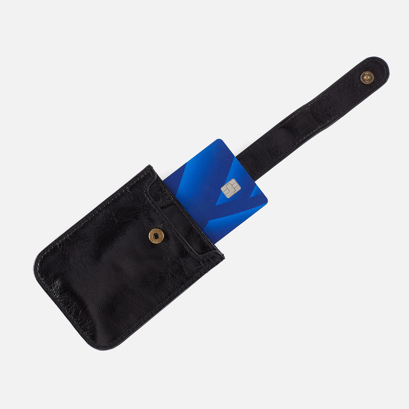 This card case has a snap closure, room for your most-used cards and a leather tab feature that pulls up your cards for easy access.