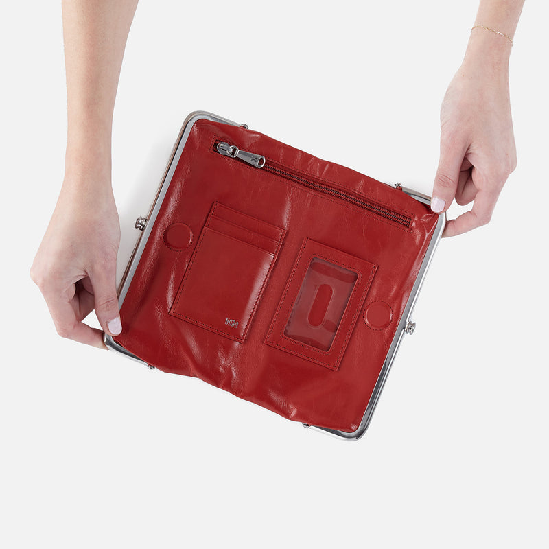 Lauren has a double frame design, making it the perfect hold-everything type of wallet and your favorite clutch.