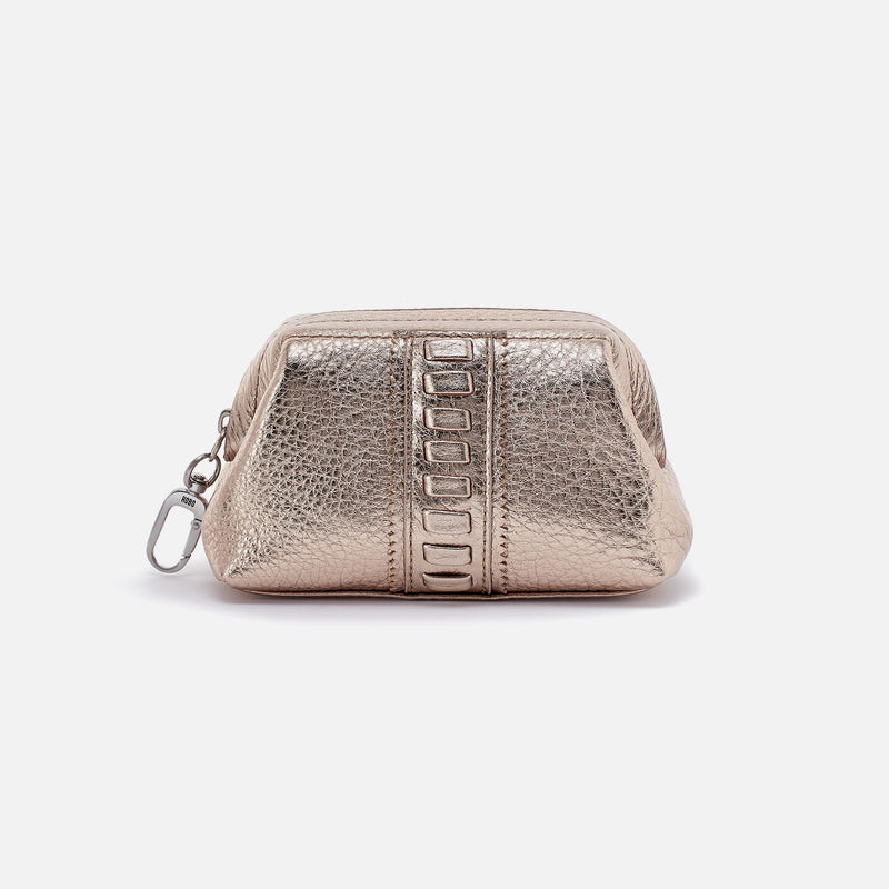 Metallic leather adds a sunlit glow to your day. Don’t want to go digging? We don’t blame you! Easily clip Nila onto your larger bag or a keychain so she’s not floating around on her own. Top zip closure – for staying secure and sleek.