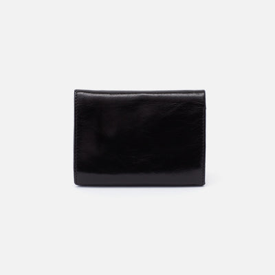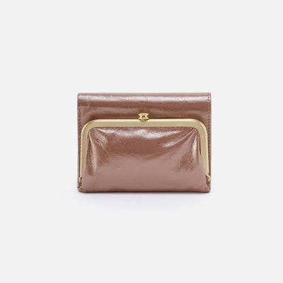 A compact trifold wallet with a vintage-inspired frame.